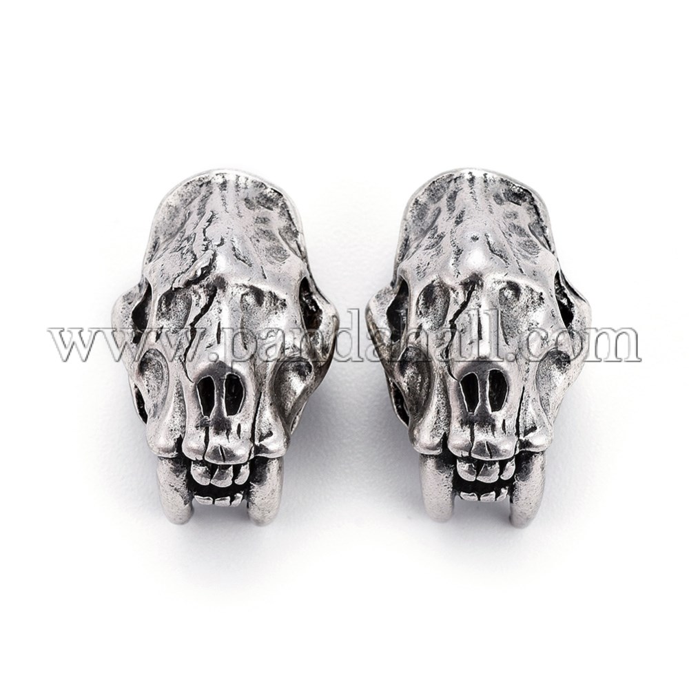 Brass Beads, Skull, Antique Silver, 20x13x14mm, Hole: 5.5mm