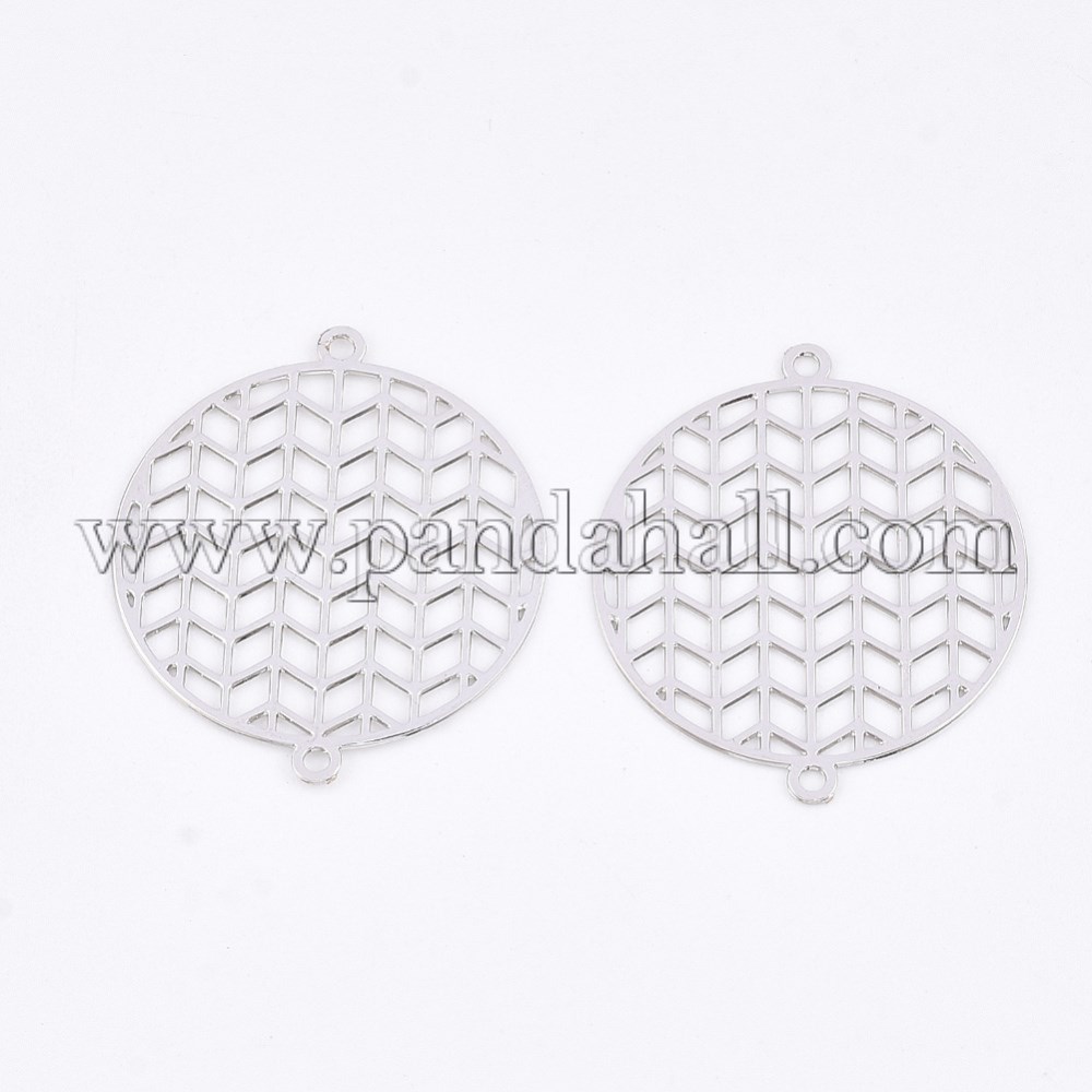 Brass Links/Connectors, Etched Metal Embellishments, Long-Lasting Plated, Flat Round with Arrow, PlatinumSize: about 23.5mm long, 20mm wide, 0.3mm thick, hole: 1mm.