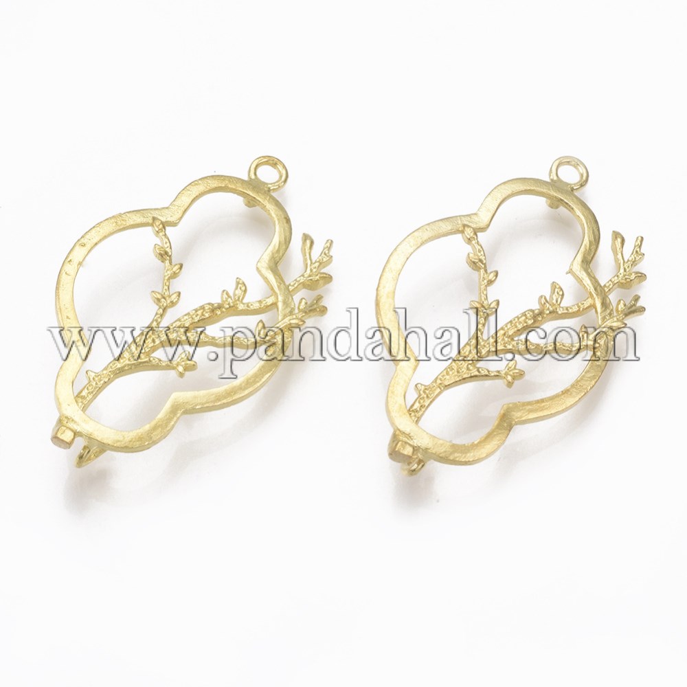 Brass Links, Nickel Free, Branch and Leaves, Unplated, 35×21.5×6.5mm, Hole: 2mm