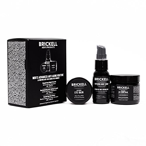 Brickell Men’s Advanced Anti-Aging Routine – Night Face Cream, Vitamin C Facial Serum and Eye Cream – Natural & Organic