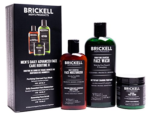 Brickell Men’s Daily Advanced Face Care Routine II – Activated Charcoal Facial Cleanser + Face Scrub + Face Moisturizer Lotion – Natural & Organic