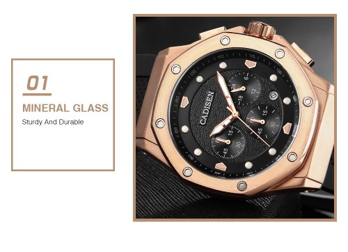 Cadisen Watch Men Sport Chronograph Clock Quartz Wristwatch Silicone Strap Watch Men