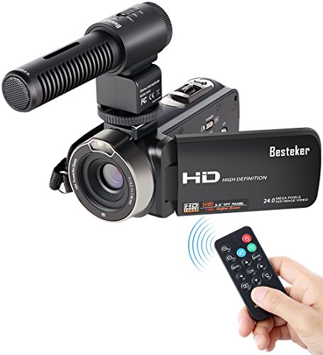 Camcorder, Besteker FHD 1080p Camcorders with External Microphone and Remote Control Digital Camera Camcorder