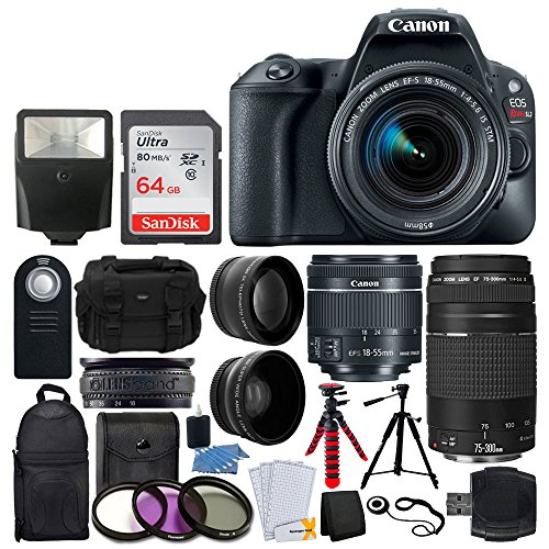 Canon EOS Rebel SL2 DSLR Camera + EF-S 18-55mm IS STM + EF 75-300mm III + 64GB Memory Card + Wide Angle & Telephoto + Wireless Remote + Slave Flash + Tripod + Case & Backpack – Full Bundle