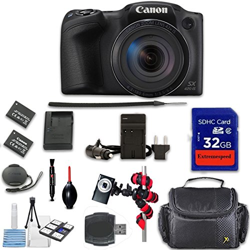 Canon PowerShot SX420 IS Digital Camera (Black) + Extremespeed 32GB High Speed Memory Card + High Speed Memory Card Reader + Spider Tripod + Camera Case and More
