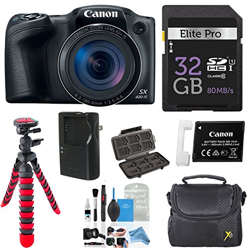 Canon PowerShot SX420 IS w/ 42x Optical Zoom and Built-In Wi-Fi with 32GB High Speed Memory Card + Deluxe Camera Case + Flexible Spider Tripod + DigitalAndMore Starter Kit Deluxe Accessory Bundle