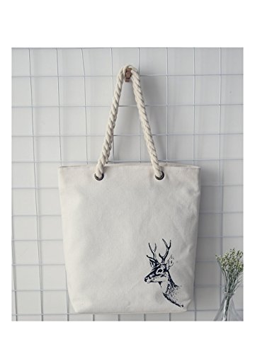 Canvas Tote Bag Animal Print Deer with Rope Handle with Zipper with Pocket 10.43 x 14.37 x 3.46inch INDEER