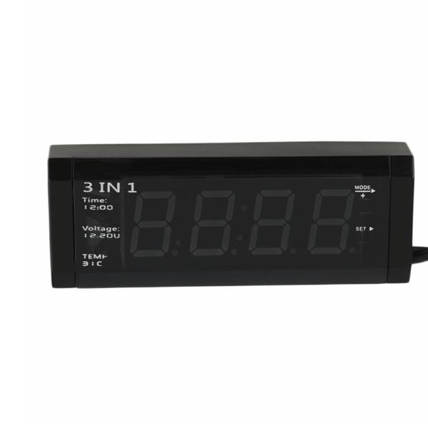 Car 3 in 1 12V Digital Auto Car Thermometer Voltmeter Voltage Meter Tester Monitor LCD Display Clock