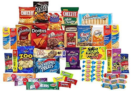 Care Package with 50 Sweet & Salty Snacks, Variety Snack Box for Military Appreciation, Gift Basket of Snack Foods for College Students, (3 Lbs)