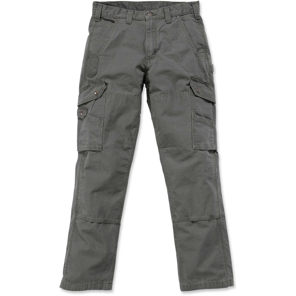 *Sizing Note* Carhartt are more generously sized you may need to consider dropping down a size from your traditional workwear clothing. Made to face tough days on the job the men’s ripstop flannel work pants from Carhartt have been expertly constructed from durable and strong 9.25 ounce pure cotton ripstop material – specially designed to resist rips and tears and featuring a soft and warm cotton flannel lining. Cut in a relaxed-fitting seat and thighs chap-style double-front construction with a multitude of handy utility pockets whilst the straight leg opening fits over work boots., 314 gram 100% cotton ripstop fabric., Sits slightly below the waist., Relaxed seat and thigh., High tenacity nylon-lined front ledge- and back pockets., Two large cargo pockets with flaps and snap closures.