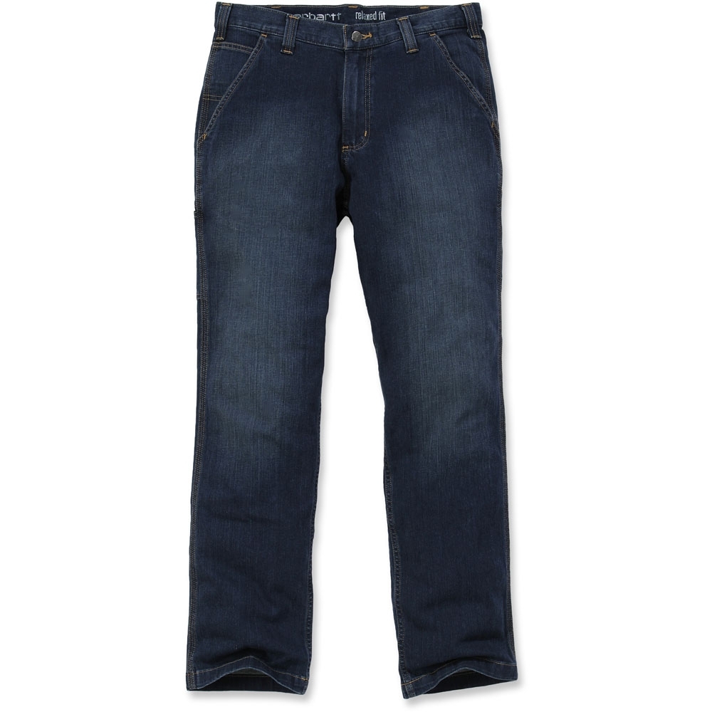*Sizing Note* Carhartt are more generously sized you may need to consider dropping down a size from your traditional workwear clothing. From the workplace to wining and dining you can get loads of use out of these Carhartt Mens Rugged Flex Relaxed Fit Dungaree Denim Jeans. These jeans were created using rugged flex materials which provide durability and stretch to every use. If you find you wear these more at work rather than pleasure the jeans also have multiple tool and utility pockets., 12-ounce 85% cotton/14% polyester/1% spandex denim., Relaxed seat and thigh., Rugged Flex durable stretch technology for ease of movement., Sits slightly below the waist., Multiple tool and utility pockets.
