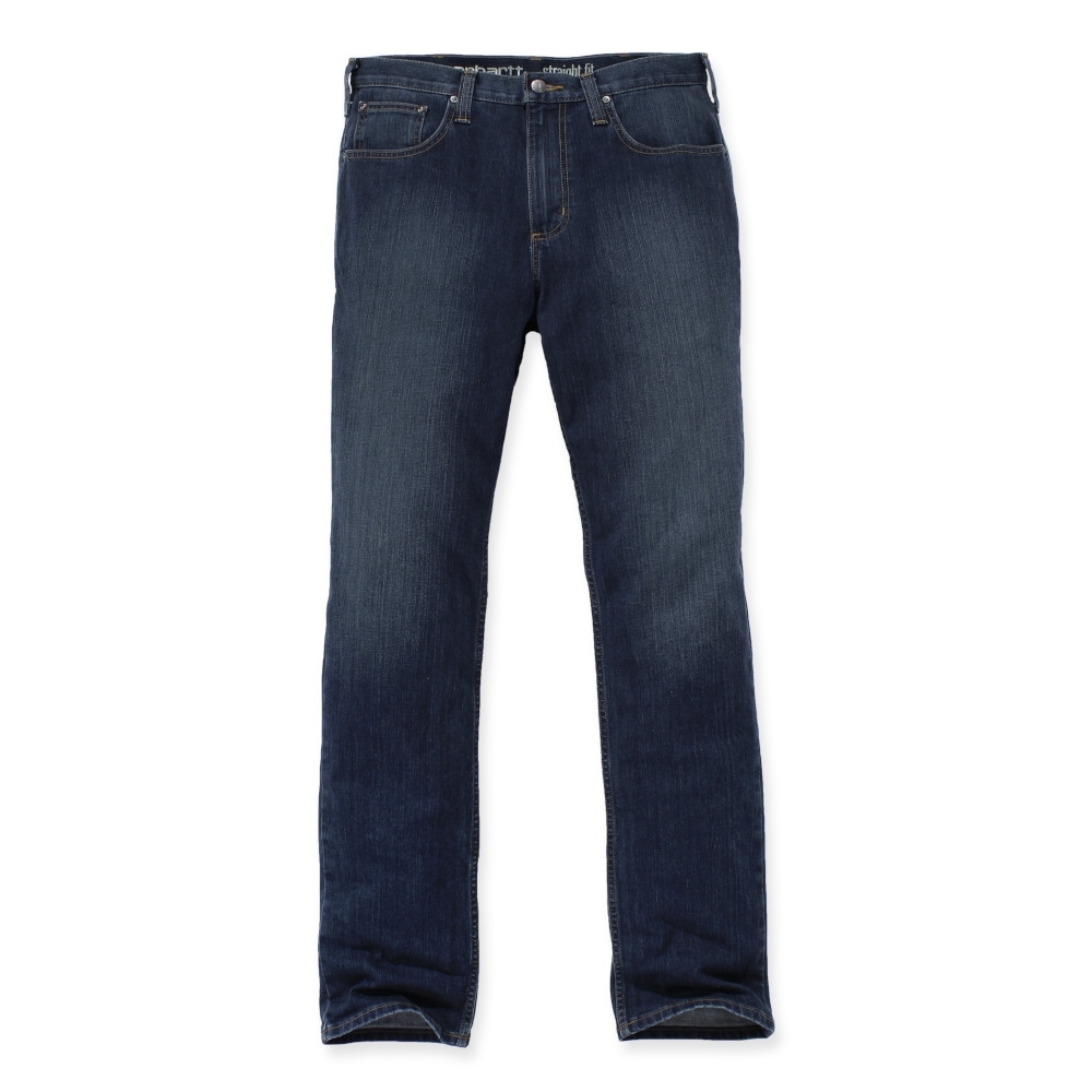 *Sizing Note* Carhartt are more generously sized you may need to consider dropping down a size from your traditional workwear clothing. Layer up in the winter with a jumper or show off a cool summer style with just a tee you can wear Carhartt’s Rugged Flex Straight Slim Tapered Denim Jeans however you like. Designed with rugged flex technologies these jeans are durable and stretchy providing ease of movement every time you wear them., 12-ounce 85% cotton/14% polyester/1% spandex denim., Slim seat and thigh., Rugged Flex durable stretch technology for ease of movement., Sits slightly below the waist., Stronger sewn-on-seam belt loops.