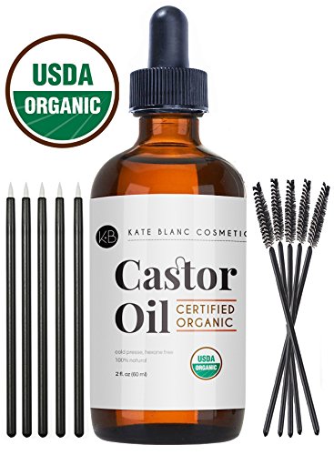 Castor Oil (4oz), USDA Certified Organic, 100% Pure, Cold Pressed, Hexane Free by Kate Blanc. Stimulate Growth for Eyelashes, Eyebrows, & Hair. Skin Moisturizer & Oil Cleanse. FREE Starter Kit