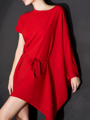 Casual Solid Asymmetrical Batwing Mini Dress With Belt