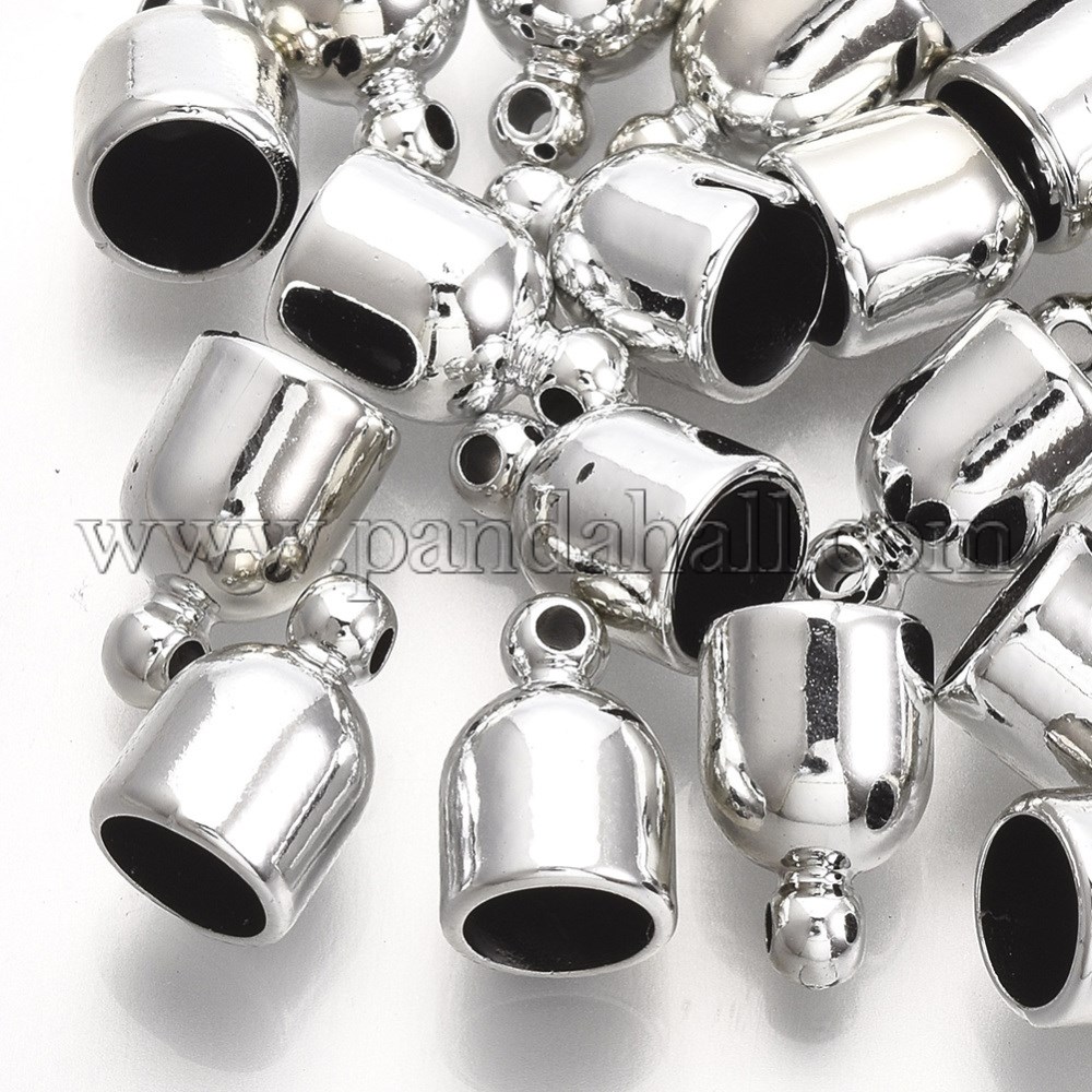 CCB Plastic Cord Ends, PlatinumSize: about 13mm long, 8mm in diameter, hole: 1.5mm; inner diameter: 6.5mm.