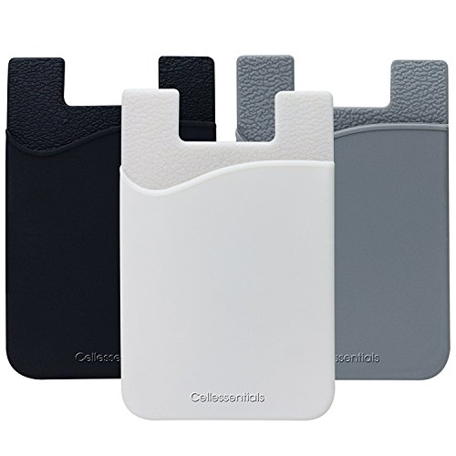 Cell Phone Wallet by Cellessentials: (For Credit Card & Id) iPhone, Android & Most Smartphones | 3 Pc Pack (Black, White, Grey)