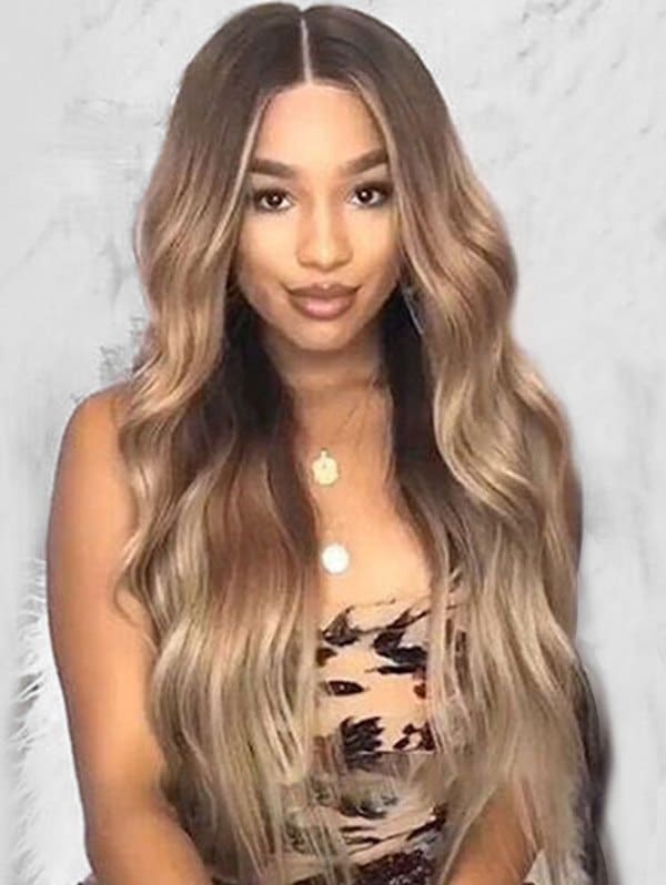 Center Part Long Wavy Ombre Heat Resistant Fiber Synthetic Wig