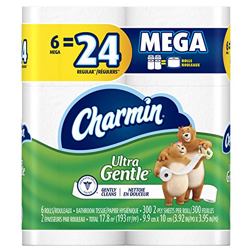 Unlike ordinary toilet paper that can irritate in use, Charmin Ultra Gentle is dermatologist-tested to gently clean even irritated skin. That’s because Charmin Ultra Gentle toilet paper has the Charmin softness you love with a touch of soothing lotion. When you buy Charmin Ultra Gentle Mega Roll toilet paper you get a big, long-lasting roll because one Charmin Mega Roll equals 4 Regular Rolls*. We all go to the bathroom, those who go with Charmin Ultra Gentle toilet paper really Enjoy the Go! (*Based on number of sheets in Charmin Regular Roll bath tissue)You Will Recieve 18 Rolls (300 sheets per roll) of Charmin Ultra Gentle Toilet Paper