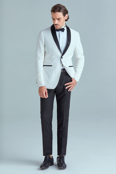 Cheap And Fine Cool One Button Groomsmen Shawl Black Lapel Groom Tuxedos Men Suits Wedding/Prom Best Man Blazer ( Jacket+Pants+Tie)