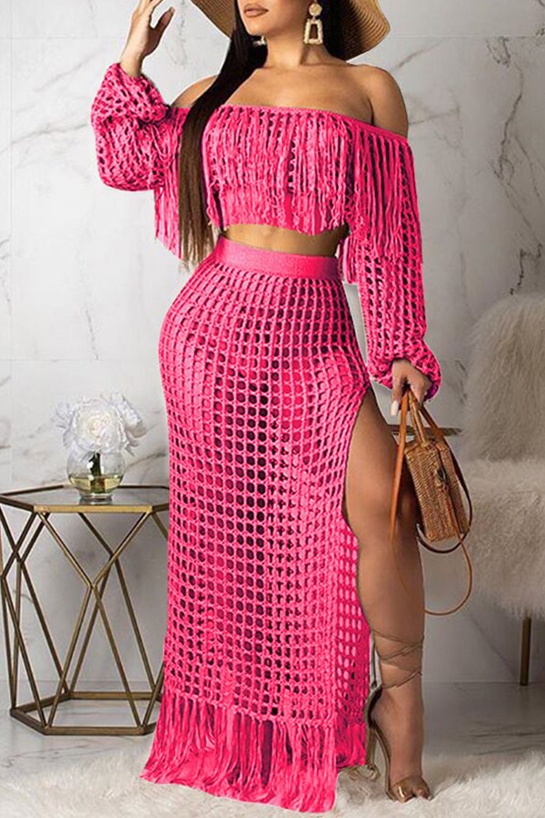 Cheap Two Pieces Lovely Sexy Hollow-out Tassel Design Pink Two-piece S