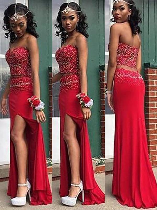 Chicloth Sheath Elegant Red Ball Gown Prom Dress