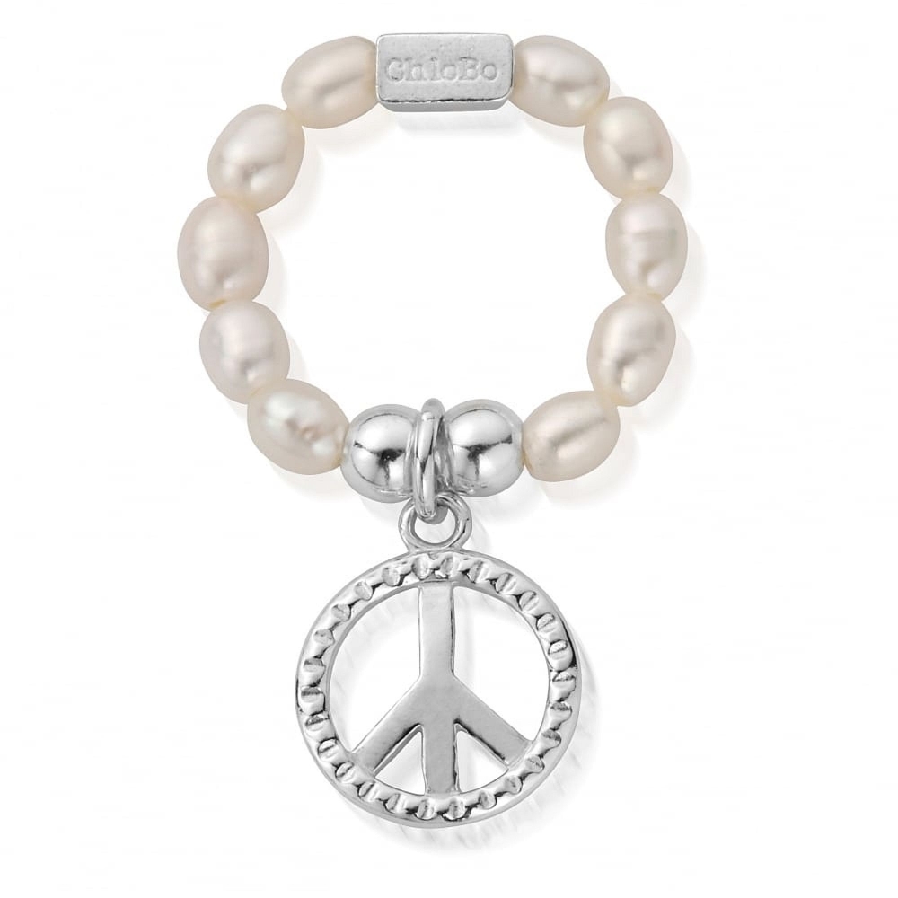 PRODUCT CODE – SRP2124 MATERIAL – 925 Sterling Silver Freshwater Pearls SIZE – UK Sizes Covered N,O,P,Q Inside Diameters 17.1 – 18.34 mm WARRANTY – Faulty products will be replaced under your 12 month warranty, any accidental damage / breakage can be repaired at a small charge. Expandable 925 Sterling Silver ring made with mini Freshwater Pearls. Featuring the stud Peace charm. The Peace sign is worn as a symbol of peace, desire & love. The one ring fits 4 sizes. This One Is Medium And Covers Sizes N-Q