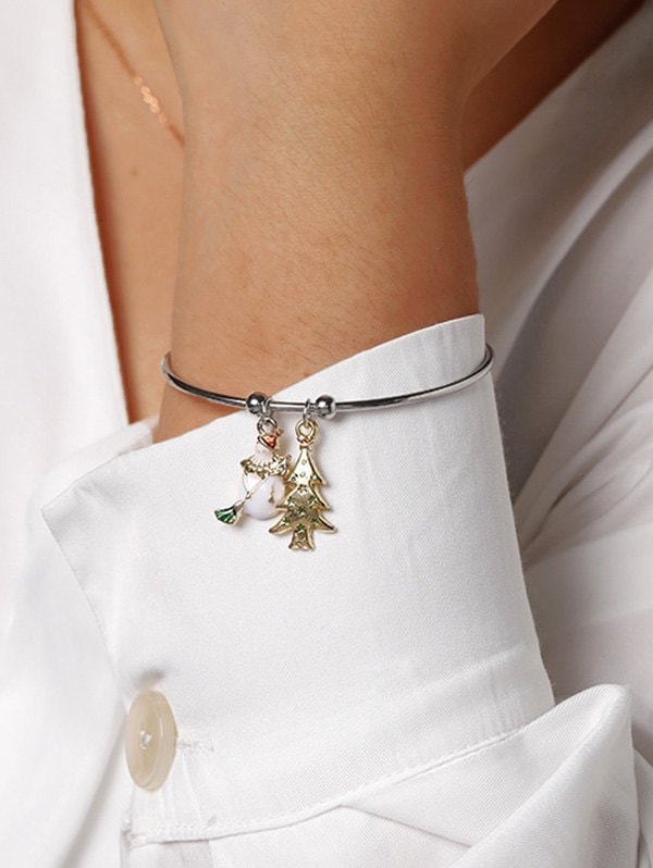 Christmas Tree Snowman Handmade Bangle Bracelet