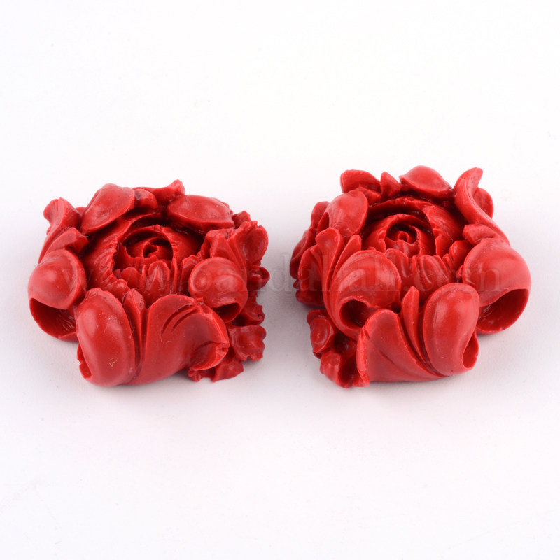 Cinnabar Links, Flower, FireBrickSize: about 26mm long, 28.5mm wide, 12.5mm thick, hole: 1.5mm.