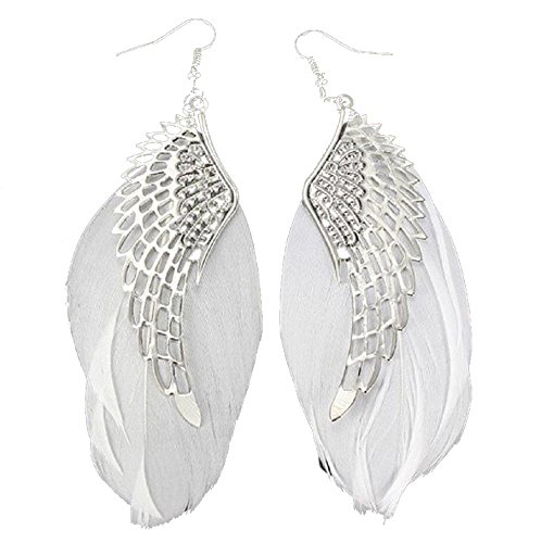 Clearance ! Yang-Yi 2018 Fashion Jewelry Gift Women Angel Metal Wing Bohemian Handmade Vintage Feather Long Drop Earrings (11cm, White)