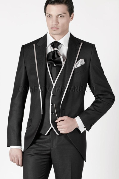 Cool Groom Wear Black Groomsmen One Button Groom Tuxedos Peak Lapel Men Suits Wedding/Prom/Dinner Best Man Blazer(Jacket+Pants+Tie+Vest)