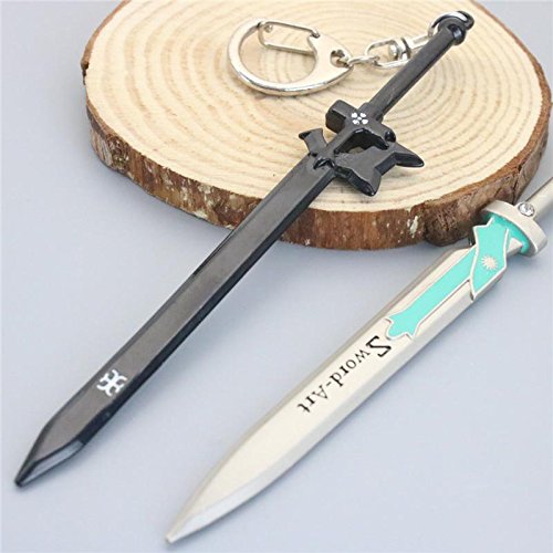 1x Kirito’s sword 1x Asuna sword Style:Fashion Jewelry Key Rings Material:Alloy Color:Black,Blue Pendant Length:12cm Weight:30g/pc Wearing Occasion: Prom / Anniversary / Party Gift for: Family / Friend/ your loved onesKirito and Asuna sword