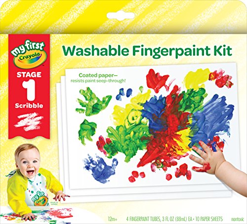 This Fingerpaint kit is the perfect activity for your toddler to begin exploring color. The washable paints come in 4 tubes of bright colors (red, yellow, green, blue) that are easy to clean up. Also includes 10 large sheets of special paper with plenty of room for little fingers to spread, swirl and mix colors. For 12 months and up.Washable fingerpaint allows for easy clean up