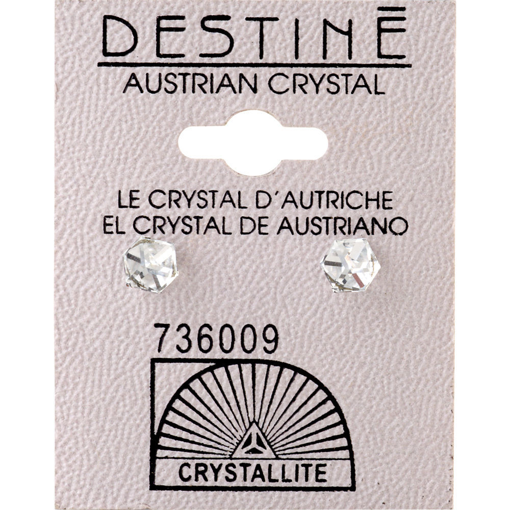 A pair of striking, small sized (6mm across) ear studs, each set with a cube-shaped, clear Swarovski Austrian Crystal. Suitable for sensitive ears.Please note that due to the nature of this product, for hygiene reasons it is non-refundable.