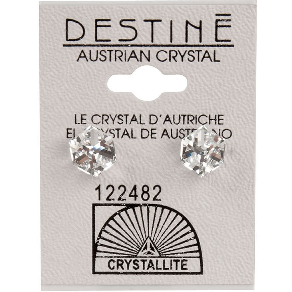 A pair of striking, small sized (6mm across) ear studs, each set with a delicate clear tilted cube-shaped Swarovski Austrian Crystal for an ultra-modern appearance. Suitable for sensitive ears.Please note that due to the nature of this product, for hygiene reasons it is non-refundable.