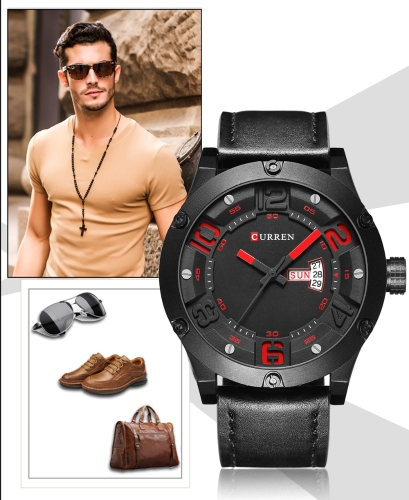 CURREN 2017 Luxuey PU Leather Quartz Men Watch Water-Proof Week Calendar Sports Style Man Casual Wristwatch