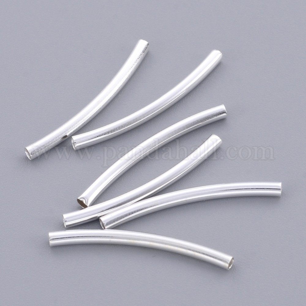 Curved Brass Tube Beads, Silver, about 2mm wide, 25mm long, hole: 1mm