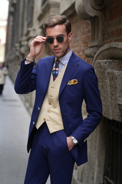 Custom Navy Blue Men Suits 2018 for Wedding Groomsmen Notch Lapel Groom Tuxedos Best Man Blazer (Jacket+Pants)