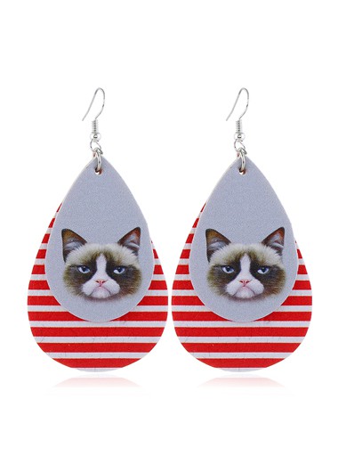 Cute Cat Print Striped Earring Set FREE Shipping & 30 Days Easy Return