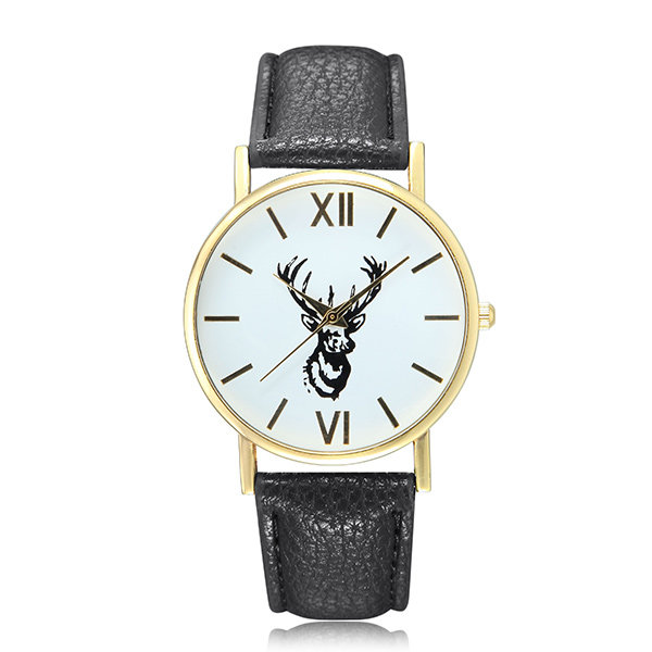 Cute Lovely Deer Pattern PU Leather Band Analog Quartz Women Wrist Watch