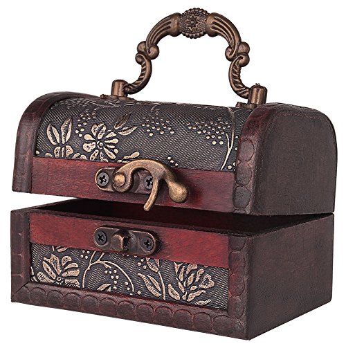 Decorative Vintage Jewelry Treasure Chest Box, Wooden Trinket Box Keepsake Gift Case With Handle