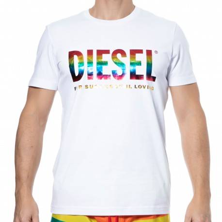 T-shirt made from soft and lightweight pure cotton. Iconic Diesel For Successful Living (Loving) logo reworked in rainbow colors. Loose cut with crew-neck and short sleeves.