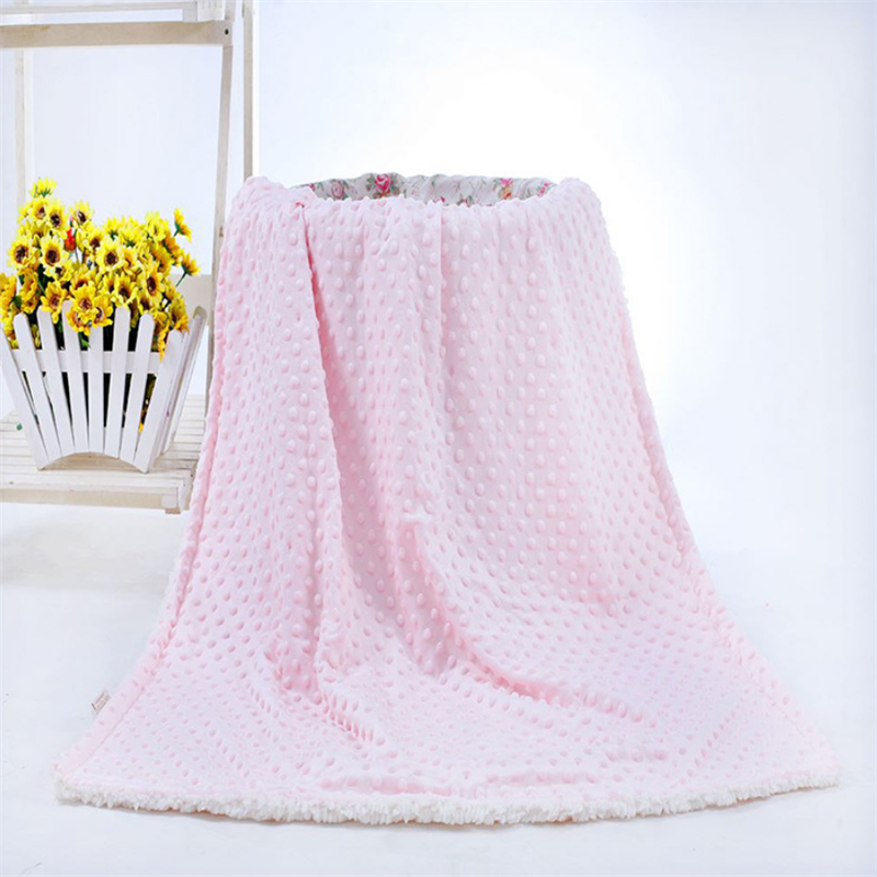 Dotted Fleece-lining Baby Blanket Swaddling Newborn Soft Bedding
