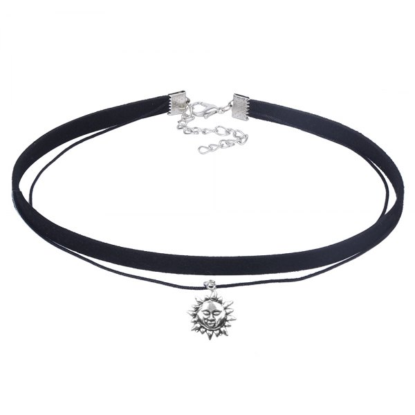 Double Flannel Necklace Sun Pattern Pendant Necklace Adjustable Necklace For Women Black