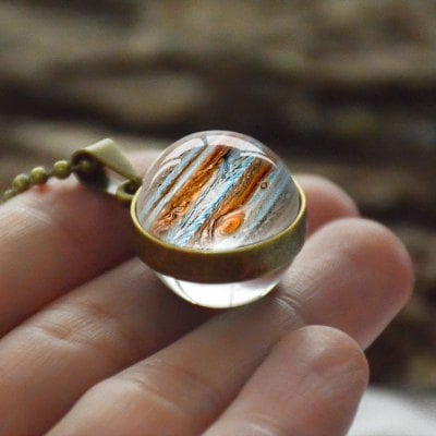 Double Side Glass Ball Necklace Earth and Planet Pattern Jewelry Galaxy Astronomy Pendant Chain
