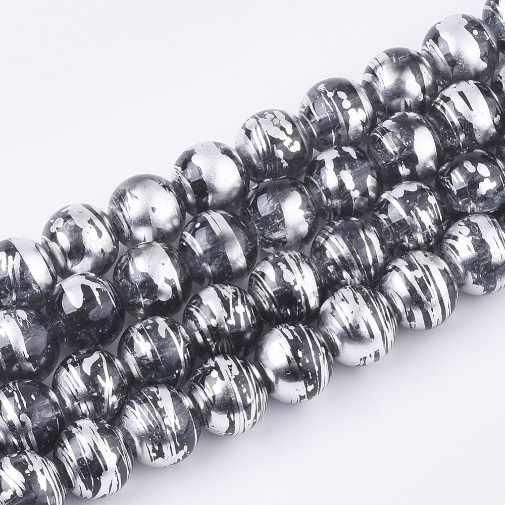 Drawbench Glass Beads Strands, Crackle Style, Round, Gray, 6×5.5mm, Hole: 1.4mm; about 140pcs/strand, 30.3”