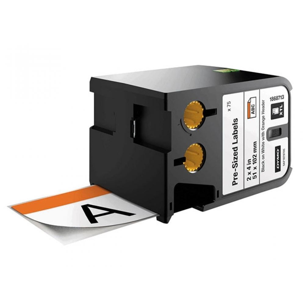 Dymo XTL Pre-Sized Labels are ideal for flat surface labelling like barcodes, faceplates, shelves, bins, beams and more. Constructed of a glossy polyester material, and coated with industrial grade adhesive, pre-sized labels help facilitate batch label printing to improve productivity. The labels will not smear or fade. They are jobsite tested and UL recognised. Suitable for use with XTL series industrial label printers.These Dymo Pre-Sized Labels have the following specification: Colour: Black On White Orange Header.Label Size: 51 x 102mm.Quantity: 70.