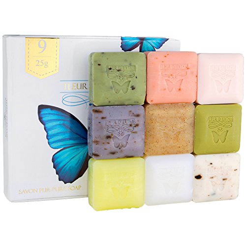 NINE DIFFERENT SCENTED SOAPS IN ONE GIFT BOX – This saop gift box sampler contains nine 25 gram guest soaps in wonderful smelling scents – Perfect for sampling to find your favorite Fleur D’Extase scent
