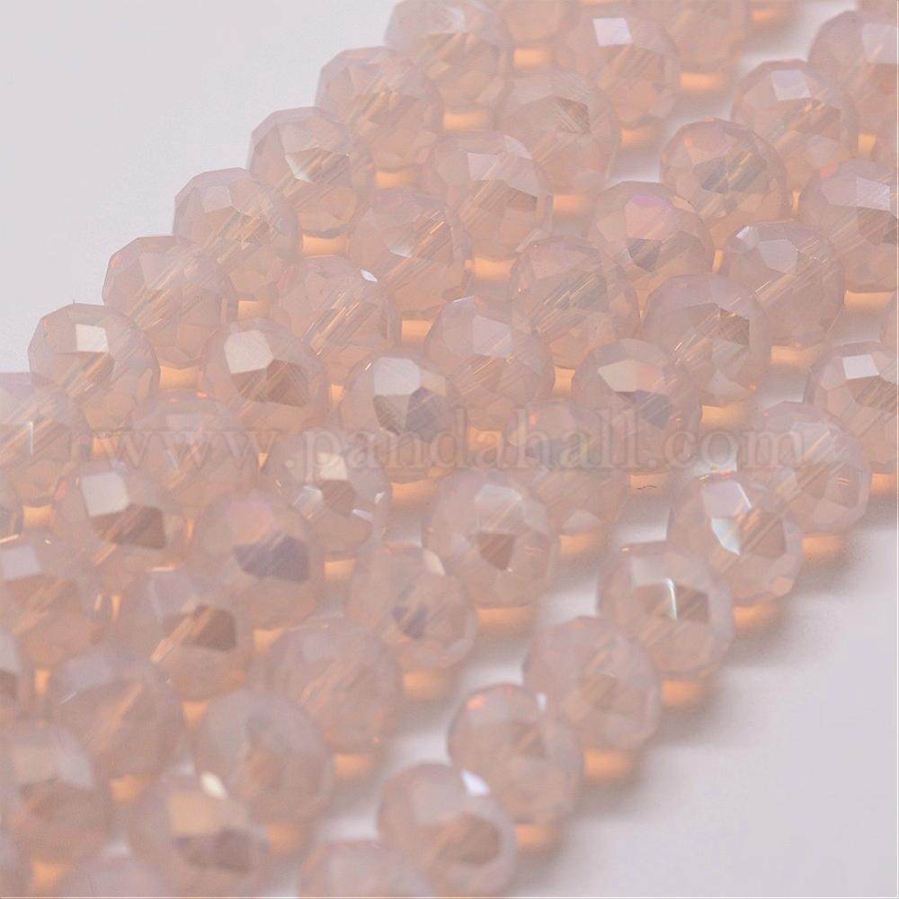 Electroplate Glass Bead Strands, Rondelle, Faceted, MistyRose, 8x6mm, Hole: 1mm; about 70pcs/strand, 16.3″