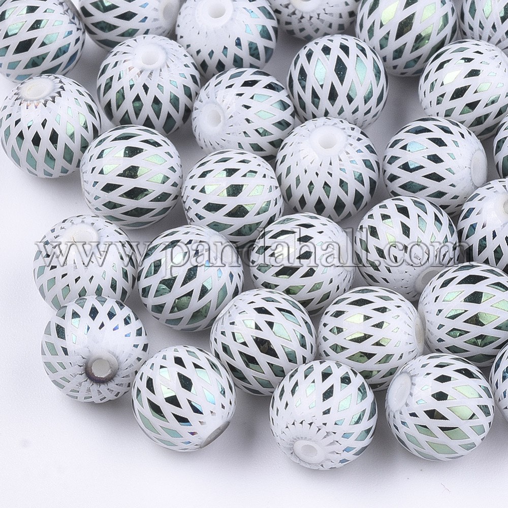 Electroplate Glass Beads, Round with Rhombus Pattern, CadetBlueSize: about 8~8.5mm in diameter, hole: 1.5mm.