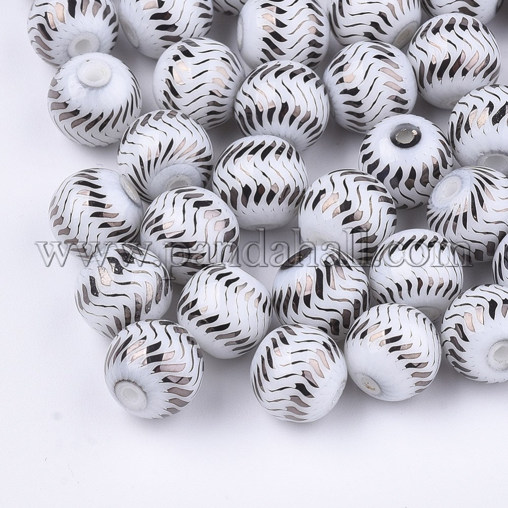 Electroplate Glass Beads, Round with Wave Pattern, CoconutBrownSize: about 8~8.5mm in diameter, hole: 1.5mm.